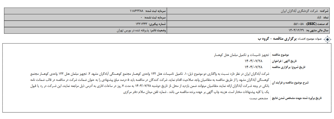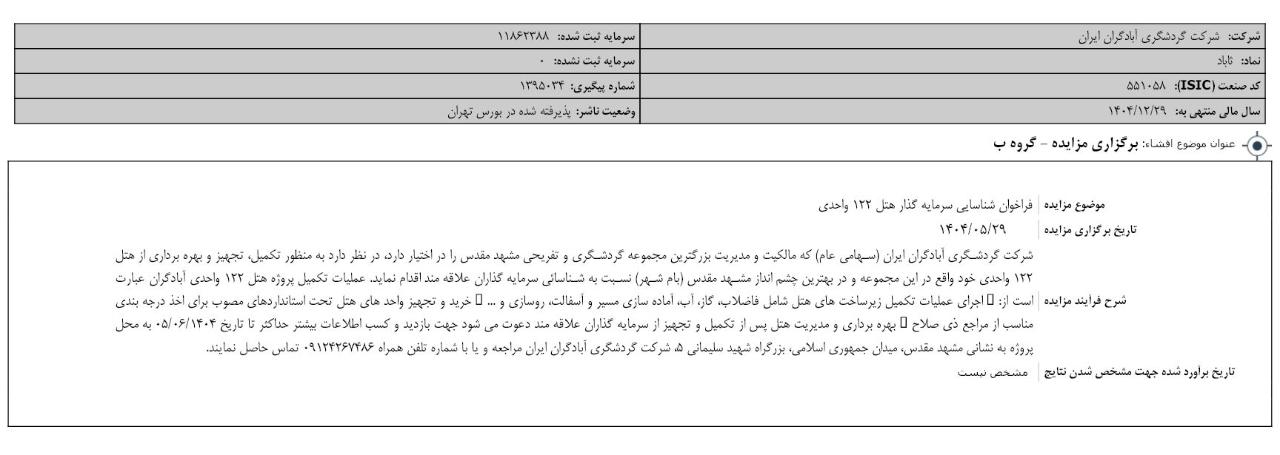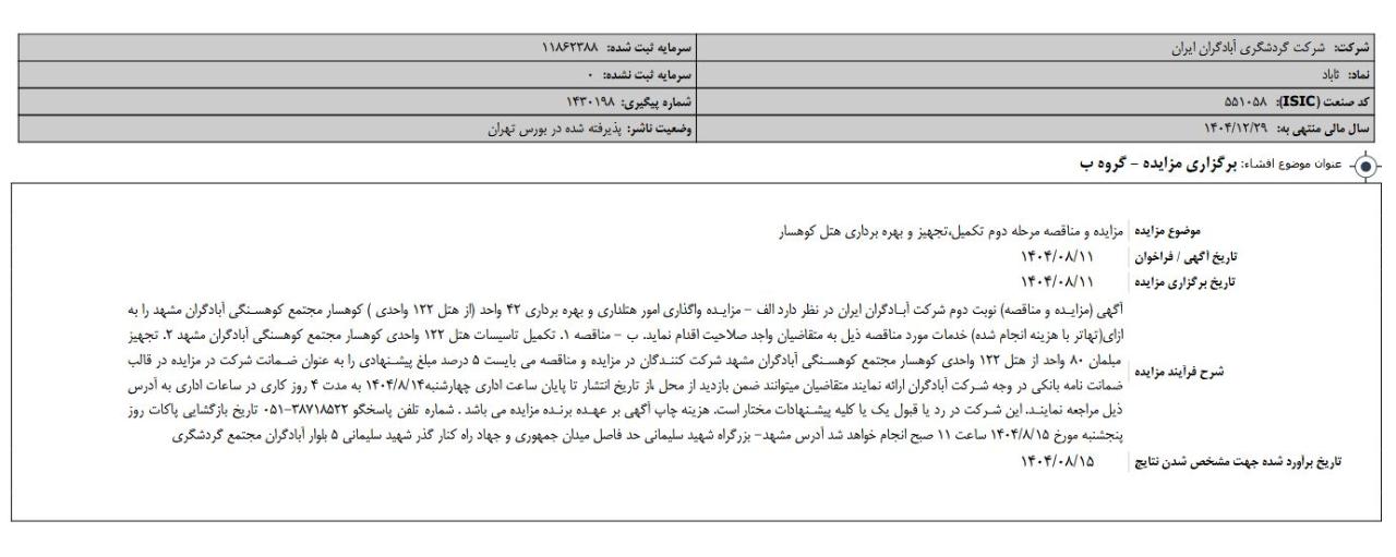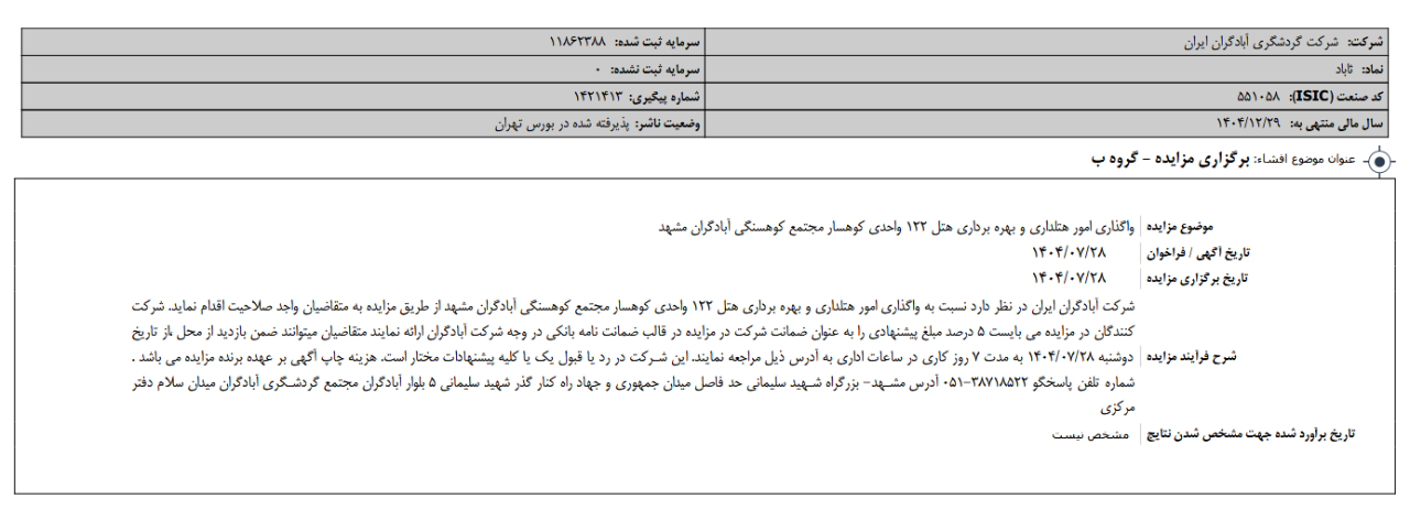افشای اطلاعات بااهمیت،برگزاری مزایده، گروه ب