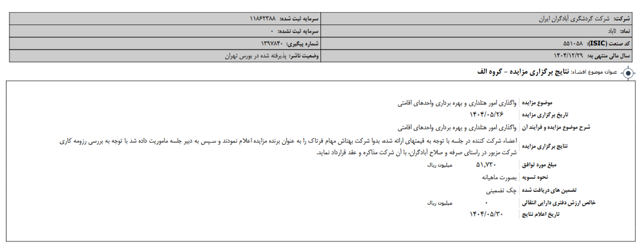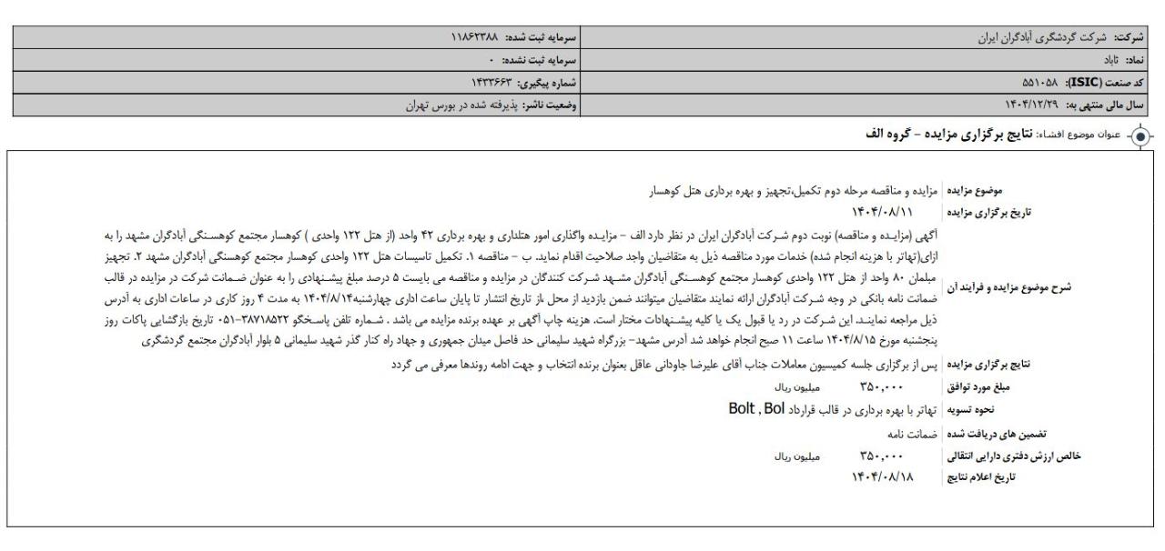 افشای اطلاعات بااهمیت، نتایج برگزاری مزایده-گروه الف