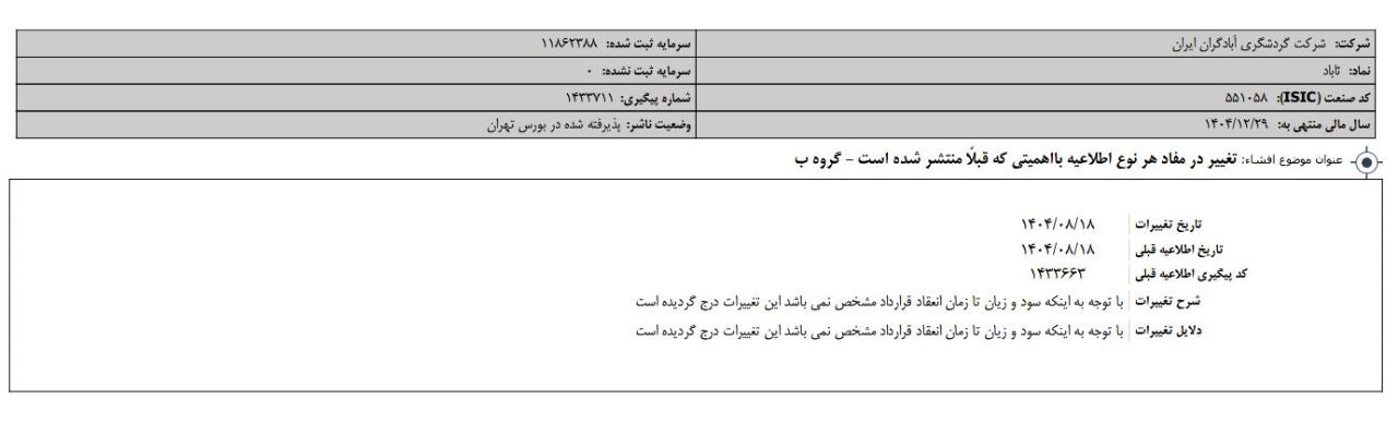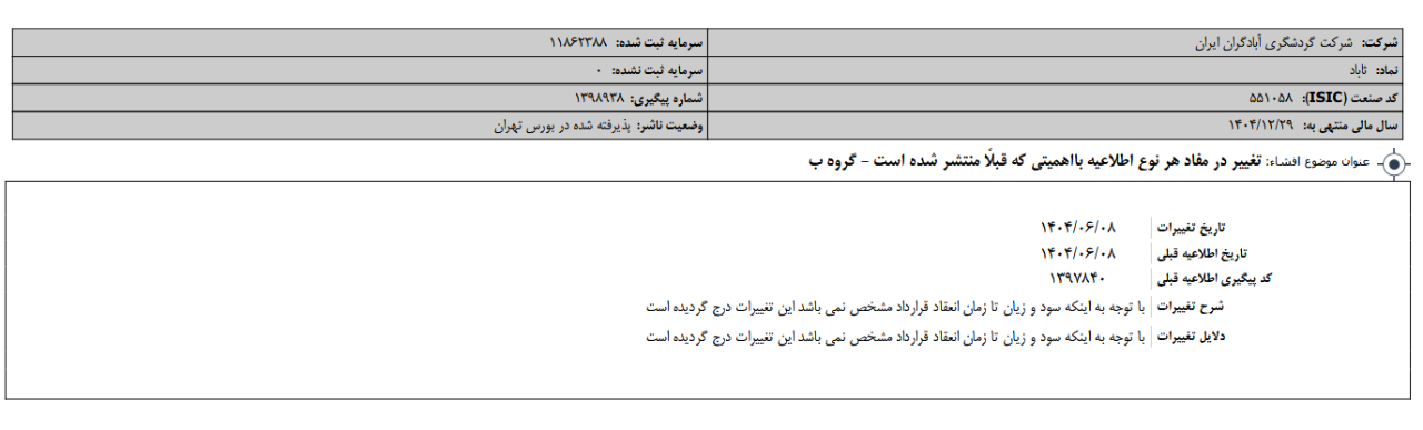 افشای اطلاعات بااهمیت،تغییر در مفاد هر نوع اطلاعیه ی بااهمیتی که قبلا منتشر شده است-گروه ب