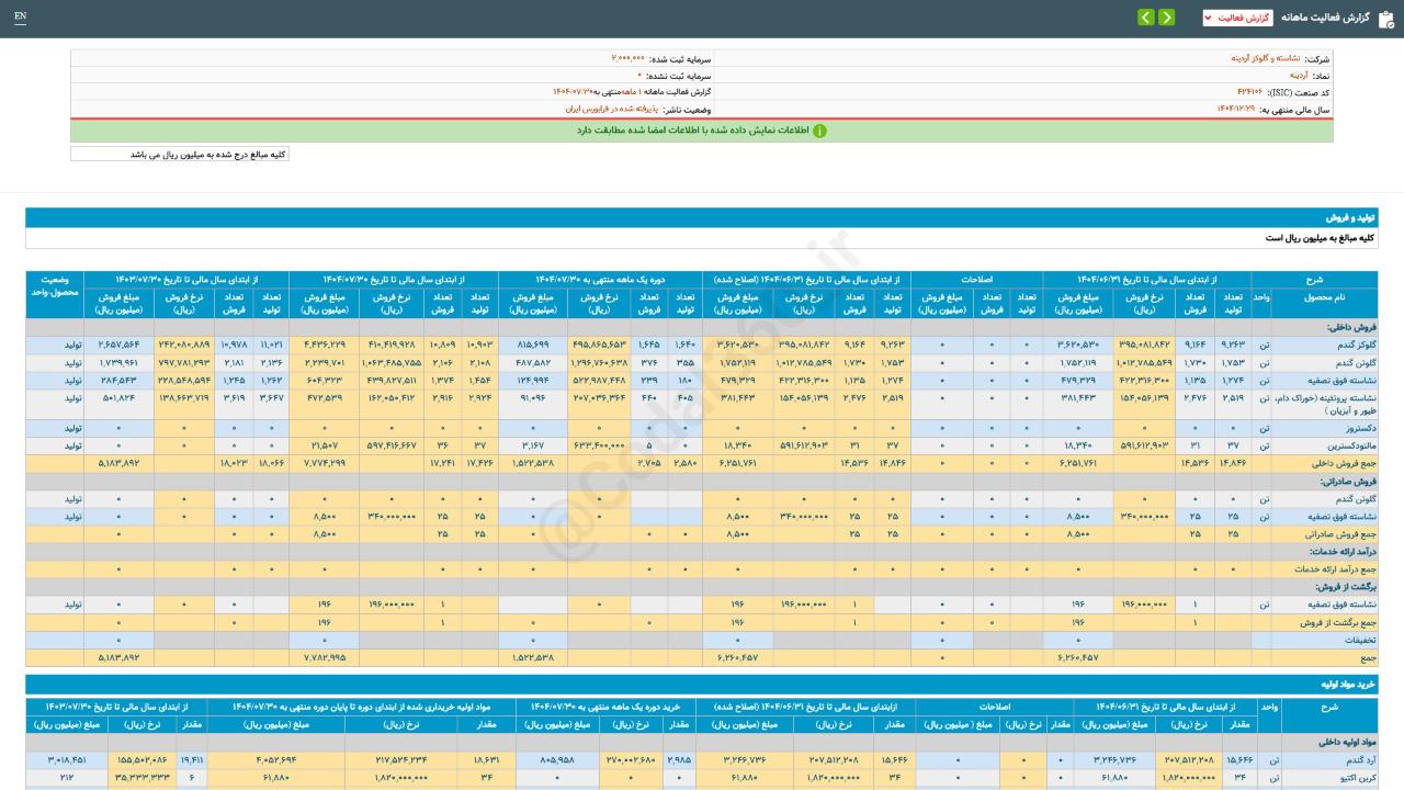 #گزارش_فعالیت_ماهانه #دوره_1_ماهه منتهی به 14040730 شرکت #نشاسته_و_گلوکز_آردینه