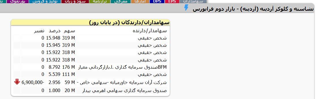 یک حقیقی و یک حقوقی فروشنده نشاسته و گلوكز آردينه در این معامله بلوکی بودند.و خریدار سهم حقوقی بود.قیمت هر سهم 17000 ریال بود.