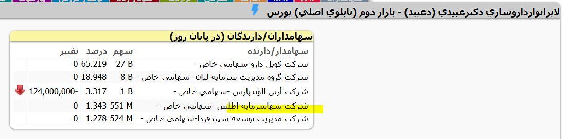 یکی از خریداران این معامله شركت سهاسرمايه اطلس بود که با این خرید به جمع سهامداران بالای یک درصد دعبید پیوست.