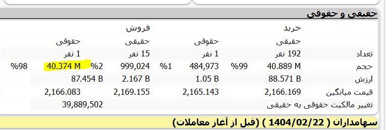 دیروز 22 اردیبهشت 1404 بعد مدت ها یک حجم سنگین 41 میلیونی در نماد #آرمان معامله شد و طی اون شركت آي اف اس كيش تعداد 40 میلیون و 374 هزار سهم را به فروش رساند و زا جمع سهامداران بالای یک ردصد بیمه آرمان خارج شد. اینکه یک حقوقی در بازار اینقدر سهم فروخته از عجایب ناظر بازار هست!!