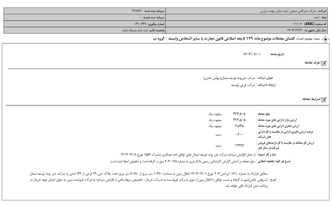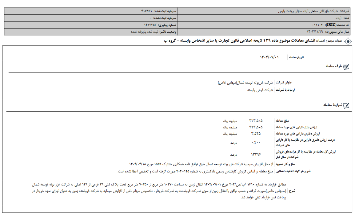 افشای اطلاعات بااهمیت، افشاي معاملات موضوع ماده 129 لایحه اصلاحی قانون تجارت یا ساير اشخاص وابسته - گروه ب