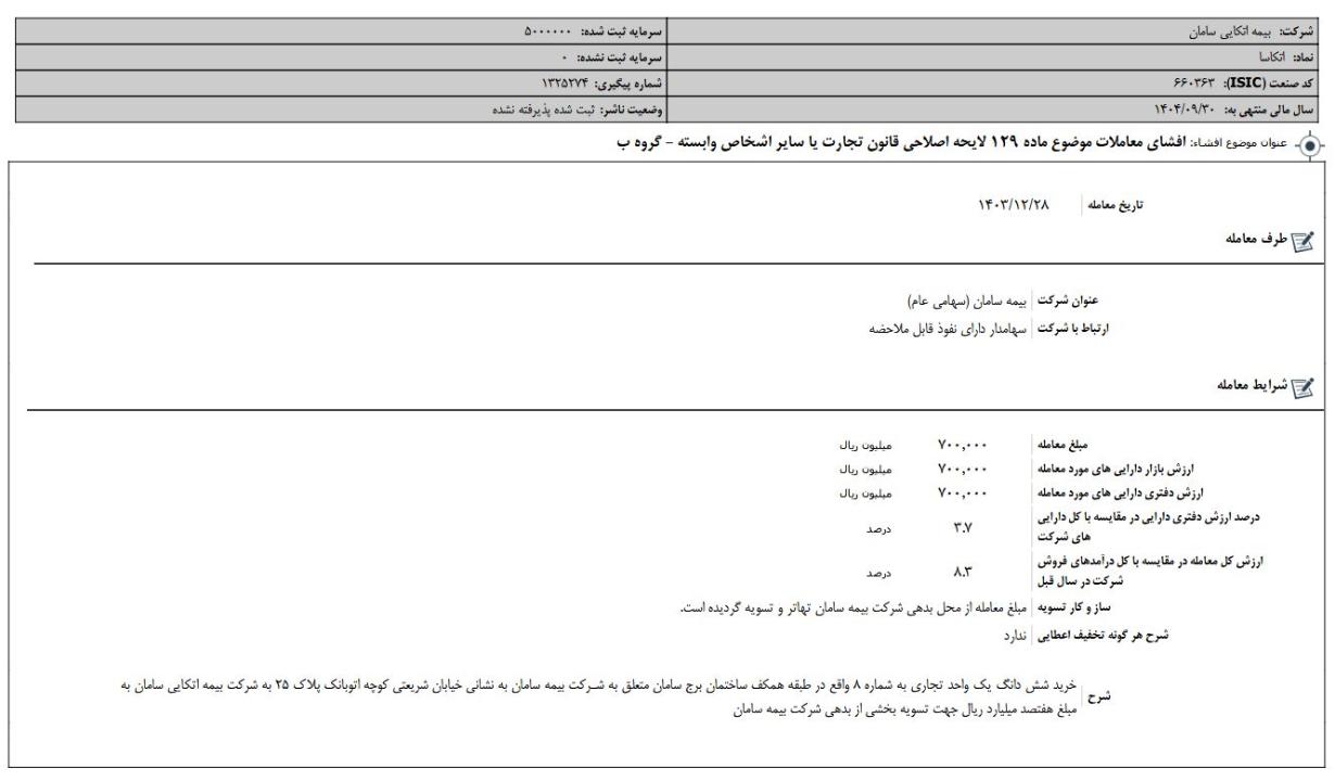 افشای اطلاعات بااهمیت،خرید واحد تجاری شماره 8 برج سامان- گروه ب