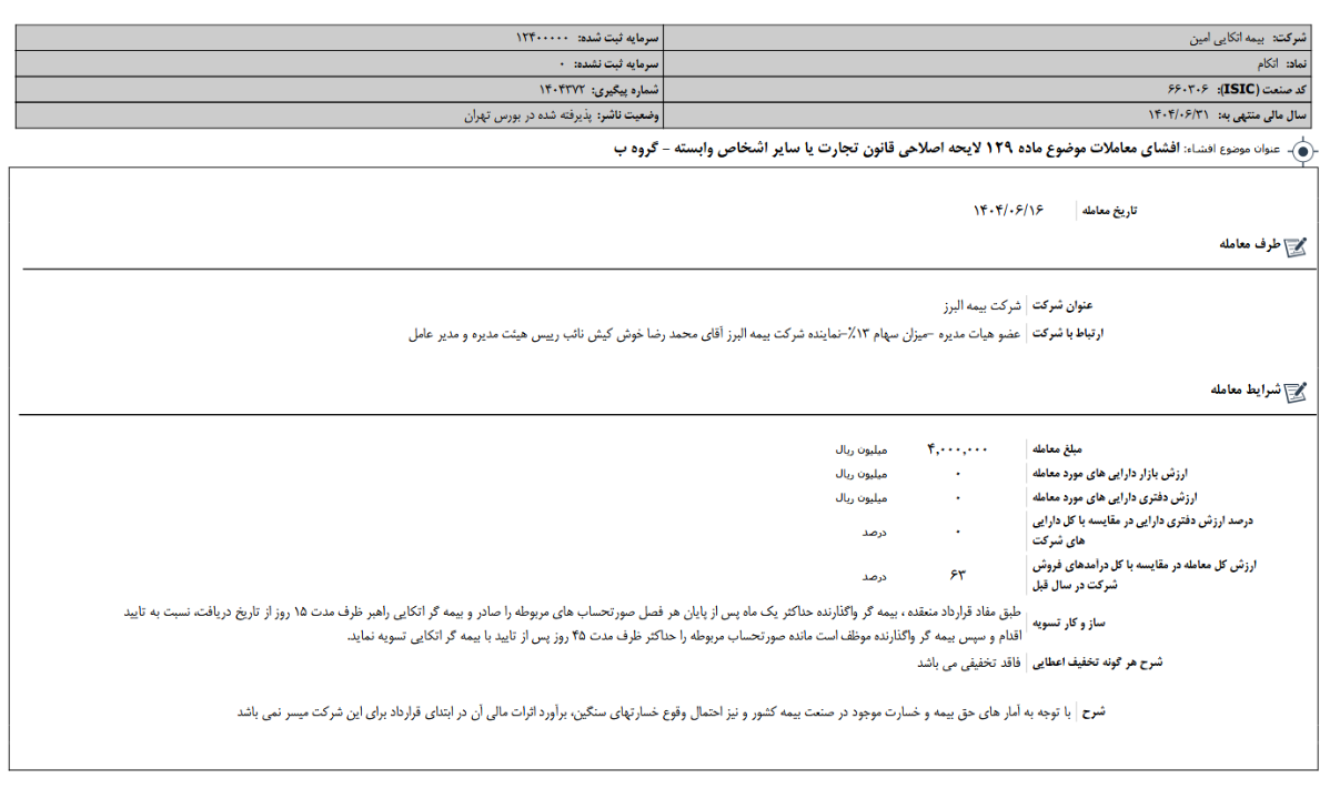 افشای اطلاعات بااهمیتف افشاي معاملات موضوع ماده 129 لایحه اصلاحی قانون تجارت یا ساير اشخاص وابسته - گروه ب