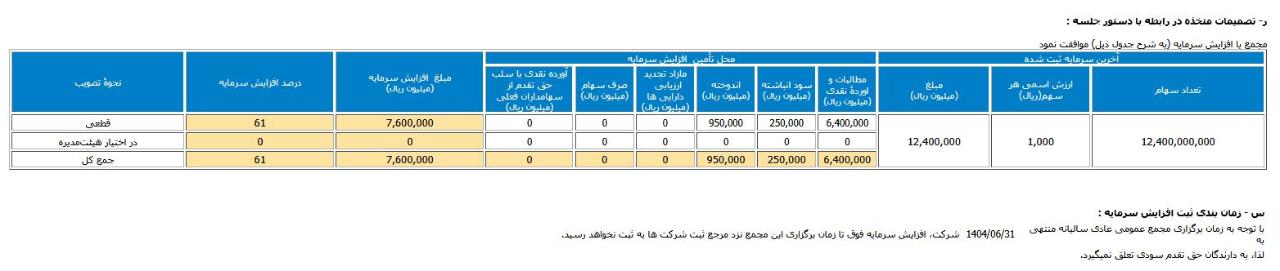 محل تامین: مطالبات حال شده سهامداران و آورده نقدی ، سود انباشته ، سایر اندوخته ها