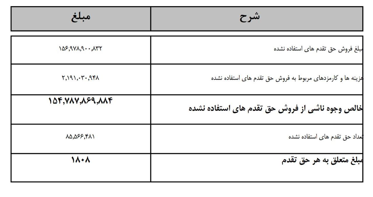 نتایج حاصل از فروش حق تقدم های استفاده نشده #اتکام