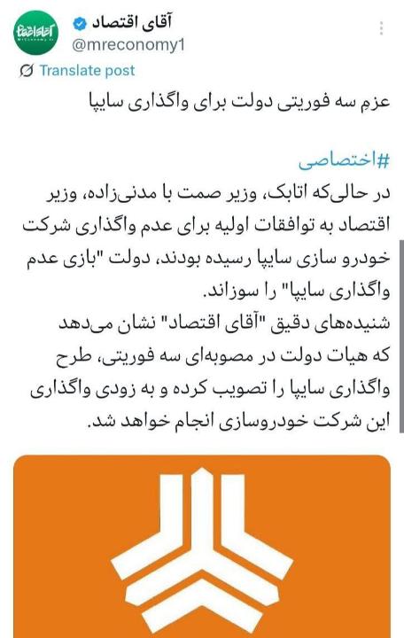 📌عزمِ سه فوریتی دولت برای واگذاری سایپا
