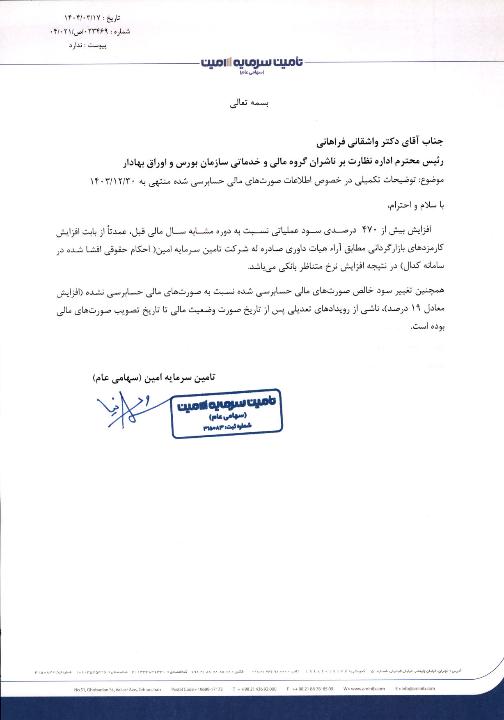 اظهار نظر حسابرس و بازرس قانونی نسبت به گزارش توجیهی هیئت مدیره در خصوص #افزایش_سرمایه #امین