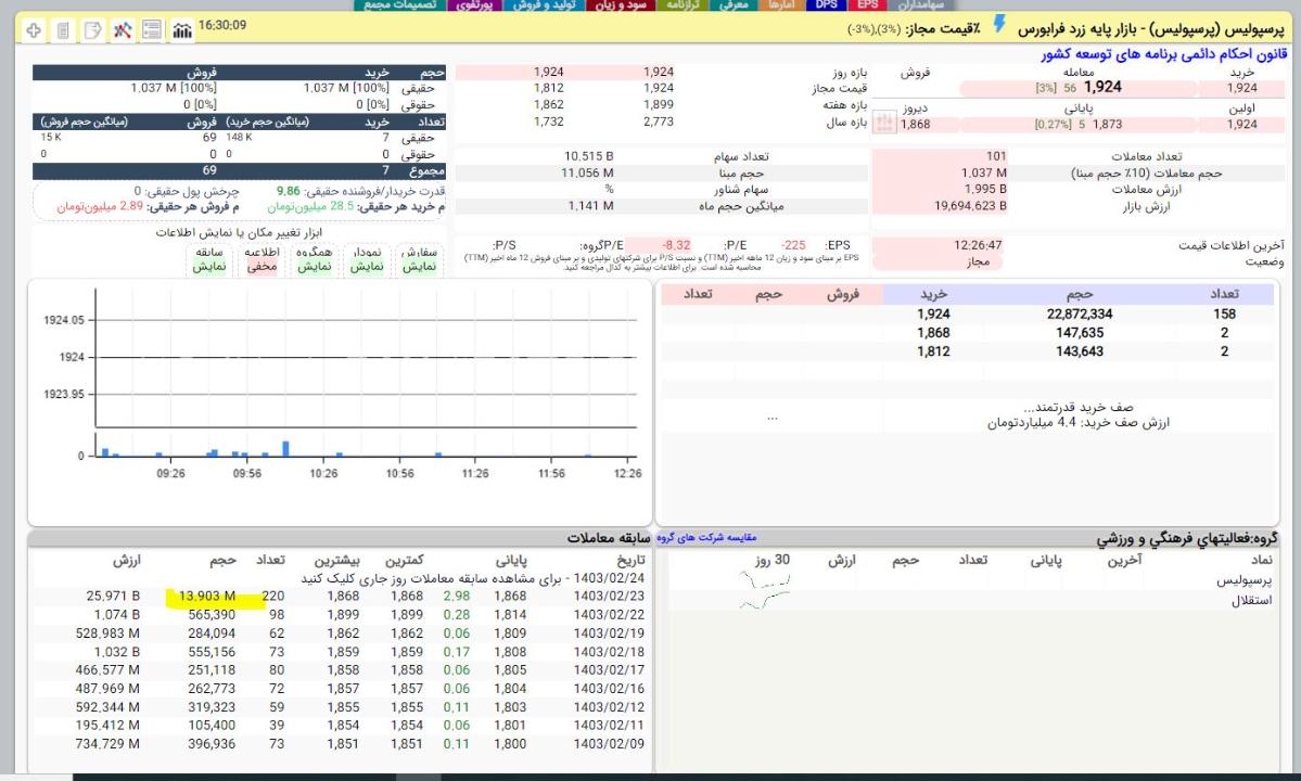 دیروز در نماد #پرسپولیس 13 میلیون سهم معامله شد! و سه درصدش پر شد. احتمال میدم عده ای پیشاپیش دارند سهم بازار رو جمع میکنند تا وقتی بابک زنجانی از زندان آزاد شد بهش با قیمت مناسب بفروشند. احتمالش هست این بانکی ها هم بلوکی و عمده فروشنده باشند.😁😁