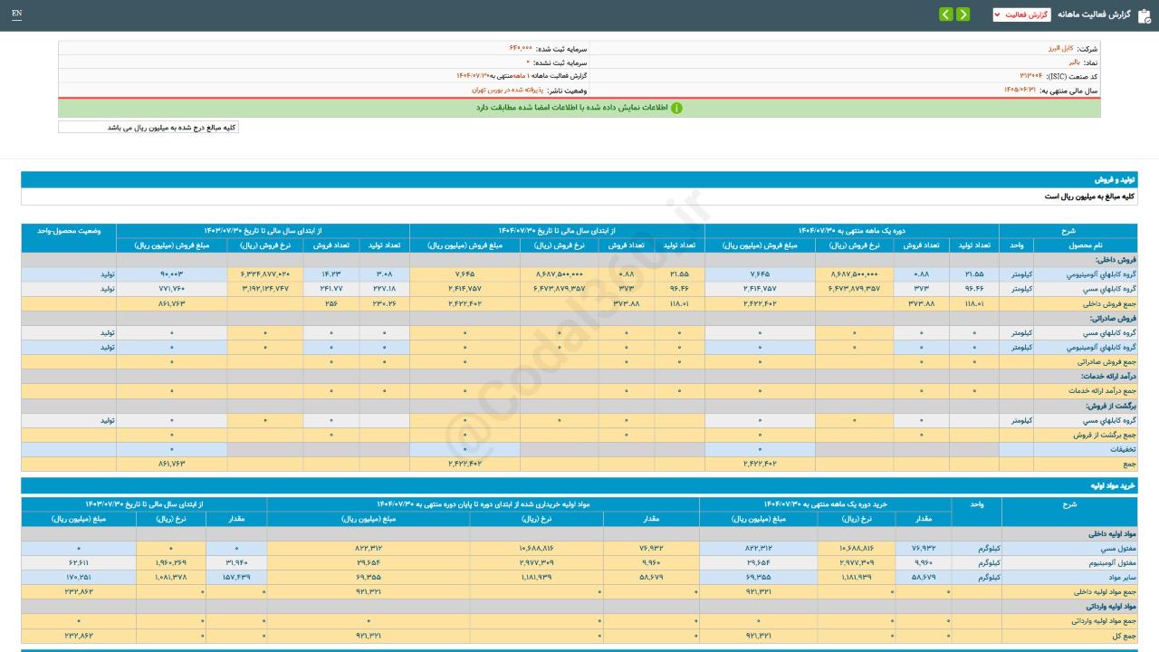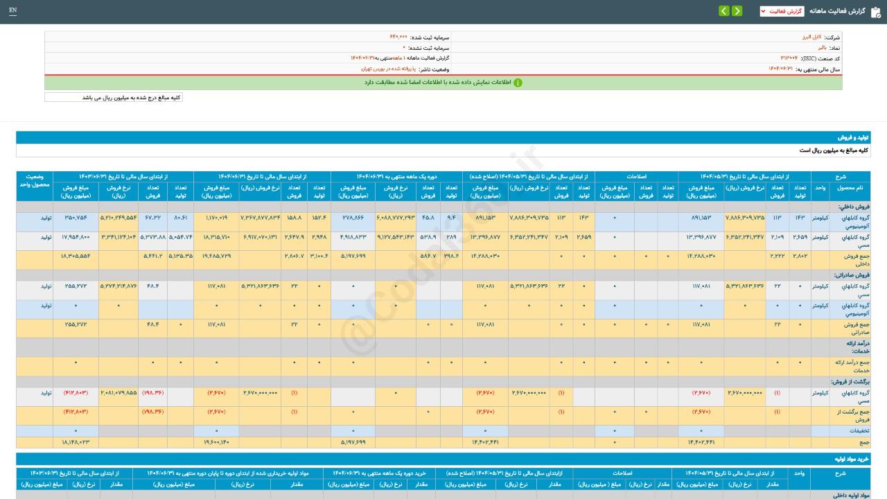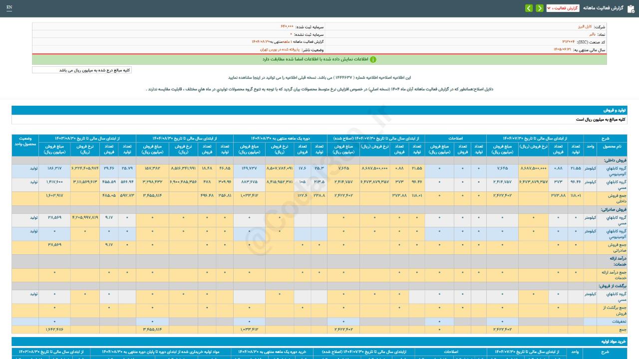 #تجهیزاتصنعتی عملکرد8ماهه به8ماهه