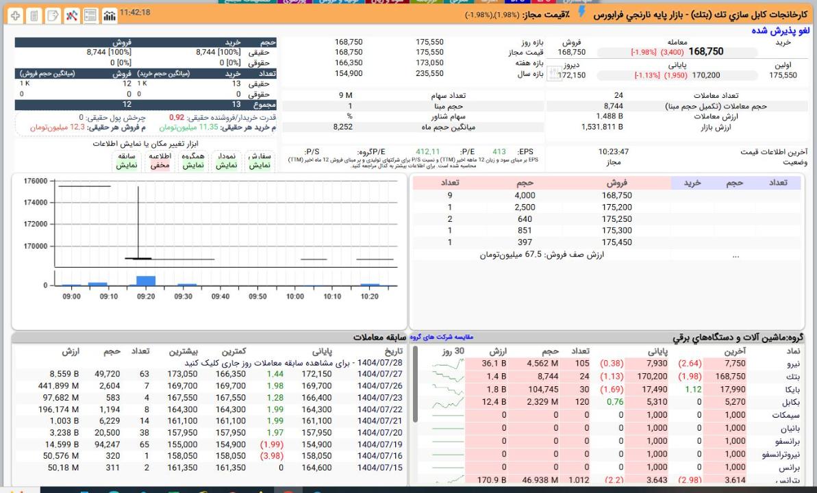 #بتک کلاً 9 میلیون سهم داره. بخاطر سرمایه 900 میلیونی اش متقاضی خوبی در باازر داره. از وقتی که حجم مبناش رو یک کردند قیمتش از 15795 تومان در طی 6 روز به 17300 تومانرسید. دوباره از امروز وارد فاز منفی شده!!!