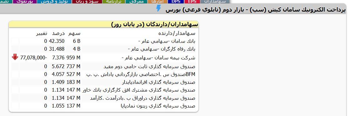 فروشنده #سپ در معامله بلوکی دیروز 31 شهریورماه شركت بيمه سامان بود