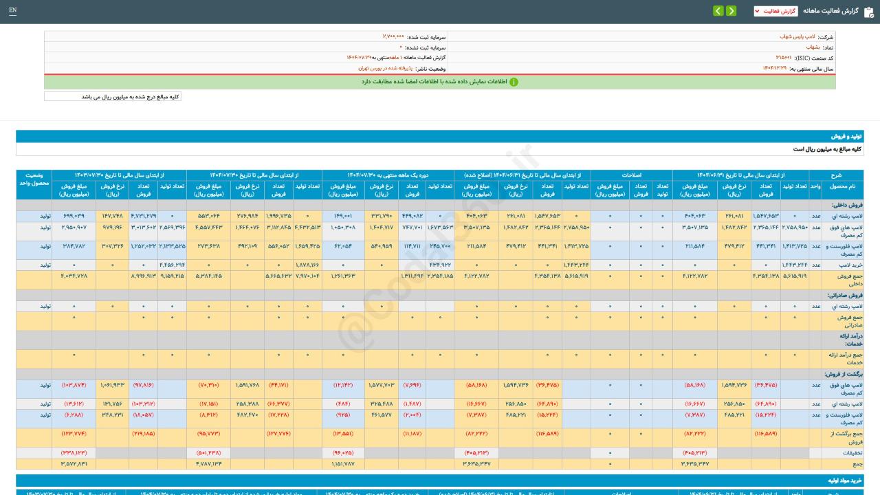 #گزارش_فعالیت_ماهانه #دوره_1_ماهه منتهی به 14040730 شرکت #لامپ_پارس_شهاب