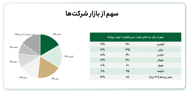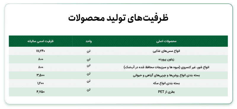در مقابل، وجود رقابت شدید، پیشینه قدرتمند رقبا، افزایش قیمت مواد خام و تورم، ورود رقبا و رکود اقتصادی تهدیدات عمدهای برای فعالیتهای شرکت به شمار میروند. با این حال، دسترسی به بازارهای منطقهای و بینالمللی، سابقه مثبت و تصویر ذهنی مطلوب مشتریان و امکان ارزآوری از طریق صادرات محصولات، فرصتهای مناسبی را برای توسعه و رشد آینده شرکت فراهم کرده است.