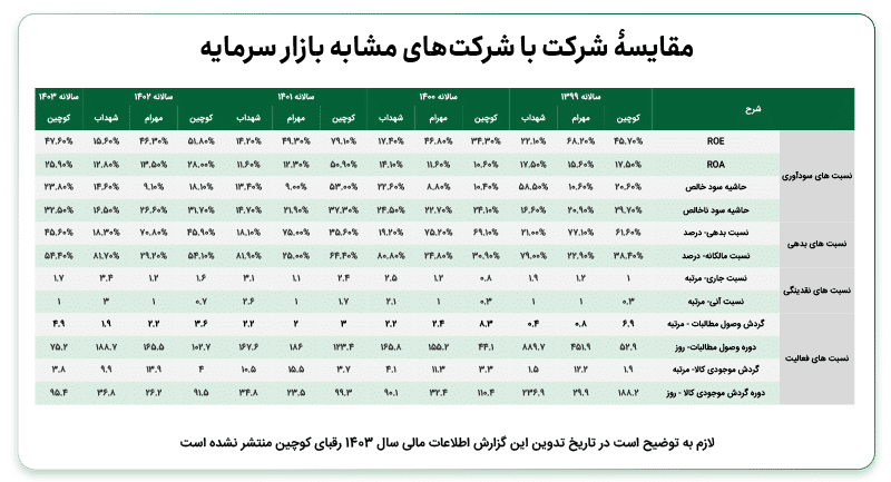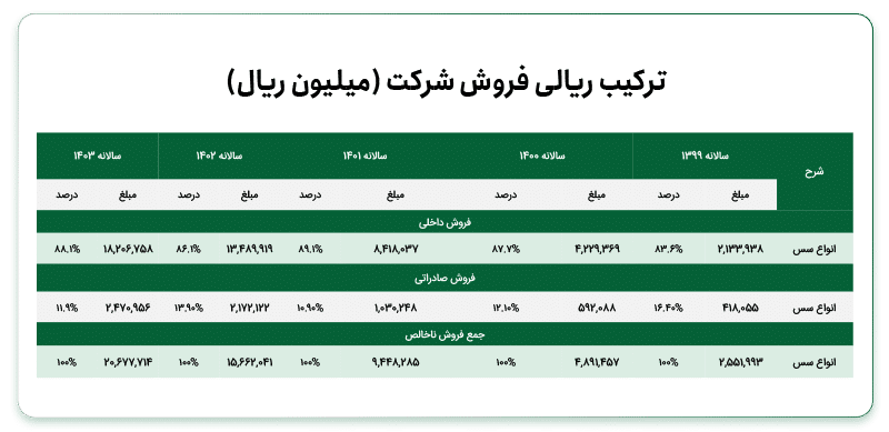 وضعیت فروش شرکت کوچین طی سالهای ۱۳۹۹ تا ۱۴۰۳ روندی رو به رشد و پایدار را نشان میدهد. در سال ۱۳۹۹، فروش ناخالص شرکت بالغ بر ۲۵۵ میلیارد ریال بود که عمده آن از طریق فروش داخلی با سهم ۸۳.۶ درصد و فروش صادراتی ۱۶.۴ درصد به ثبت رسیده است. این روند افزایشی در سالهای بعد نیز ادامه یافته و در سال ۱۴۰۳ فروش ناخالص شرکت به بیش از ۲۰,۶۰۰ میلیارد ریال رسید که فروش داخلی با ۸۸.۱ درصد سهم اصلی درآمدها را تشکیل داده است. این ارقام نشاندهنده توانمندی شرکت در حفظ و گسترش بازارهای داخلی و خارجی بهطور همزمان است و چشمانداز مثبتی برای ادامه رشد فروش در سالهای آینده رقم میزند.