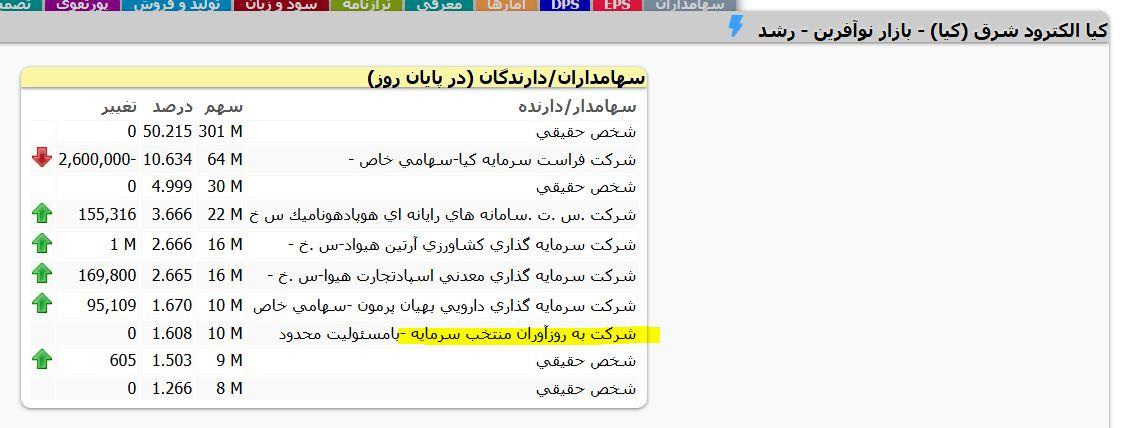 در عوض شركت سرمايه گذاري كشاورزي آرتين هيواد اقدام به خرید یک میلیون سهم نمود و همچنین شركت به روزآوران منتخب سرمايه با خریدی که در این نماد داشت به جمع سهامداران بالای یک درصد شرکت پیوست.