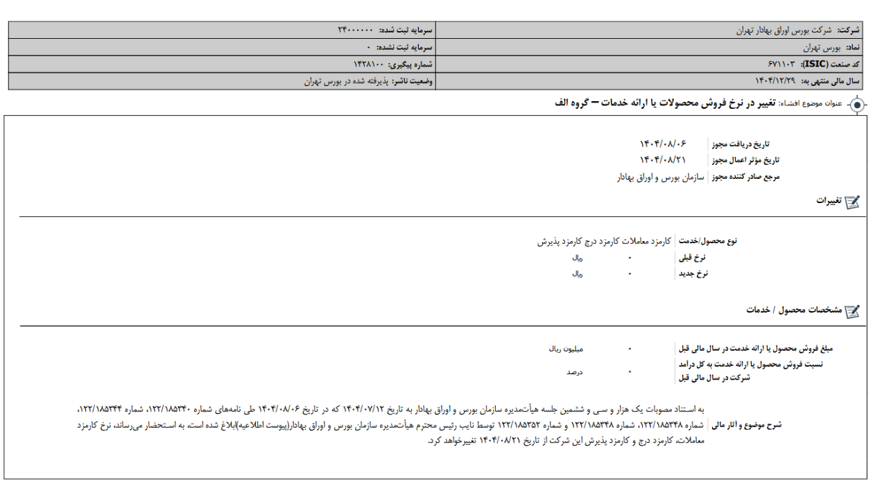 افشای اطلاعات بااهمیت،تغییر در نرخ فروش محصولات یا ارائه ی خدمات-گروه الف