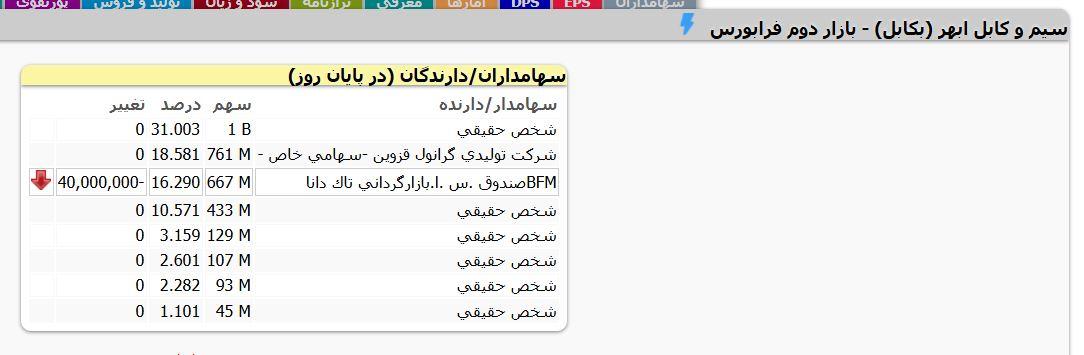 فروشنده #بکابل در معامله بلوکی دیروز 12 آبان ماه یکی از سهامداران حقیقی بالای یک درصد شرکت بود.