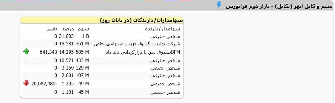 خریدار و فروشنده سيم و كابل ابهر در این معامله بلوکی حقوقی بود. قیمت هر سهم 4199 ریال بود.