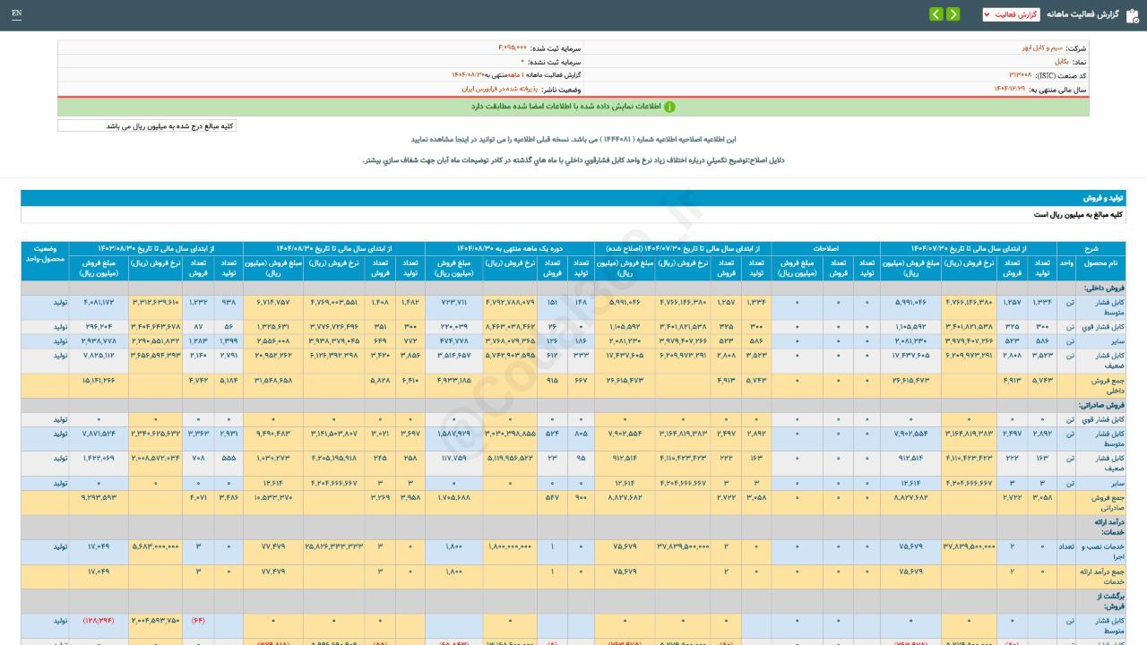 #گزارش_فعالیت_ماهانه #دوره_1_ماهه منتهی به 14040830 شرکت #سیم_و_کابل_ابهر