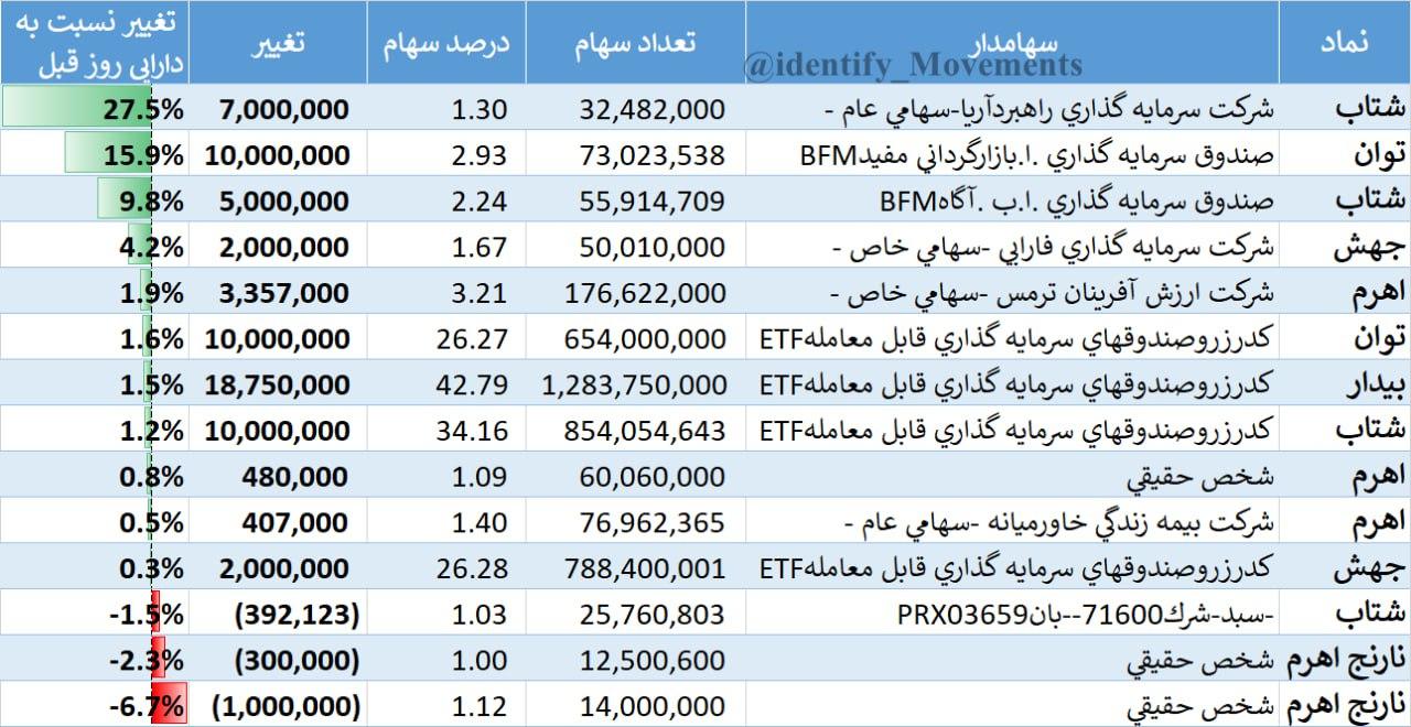دیروز 19 آبان 1409 صندوق سرمايه گذاري ارزش آفرين بيدار با خریدی که رد نماد #والماس داشت به جمع سهامداران بالای یک درصد این شرکت پیوست
