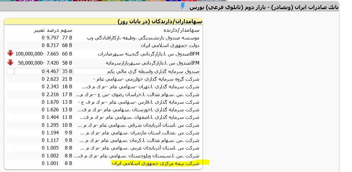 خریدار #وبصادر در معامله بلوکی دیروز 17 آبان ماه بیمه مرکزی جمهوری اسلامی ایران بود که جدای از این بلوک 17 میلیون سهم را هم در بازار عادی خریداری نمود.