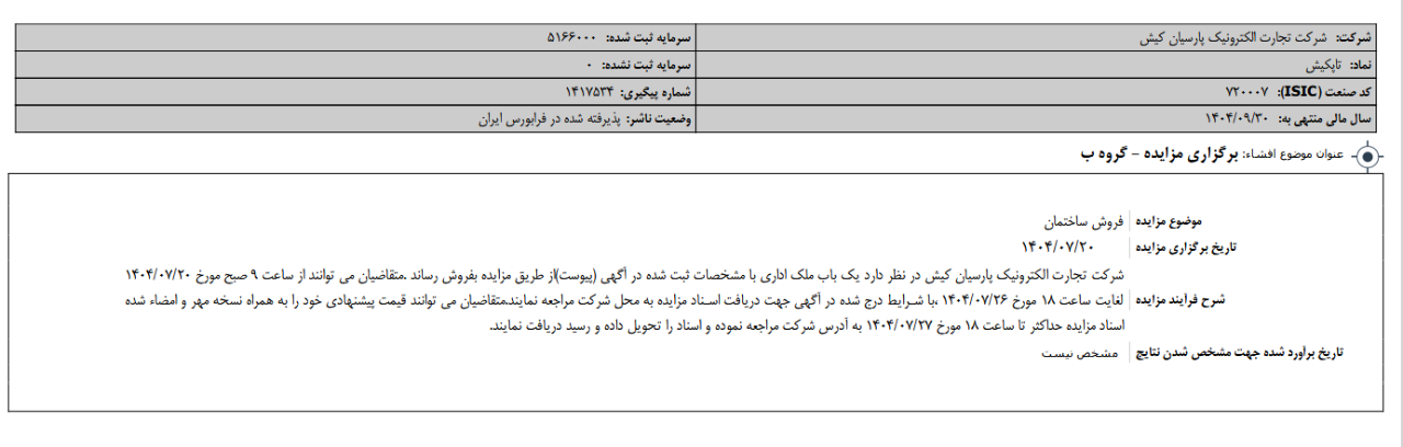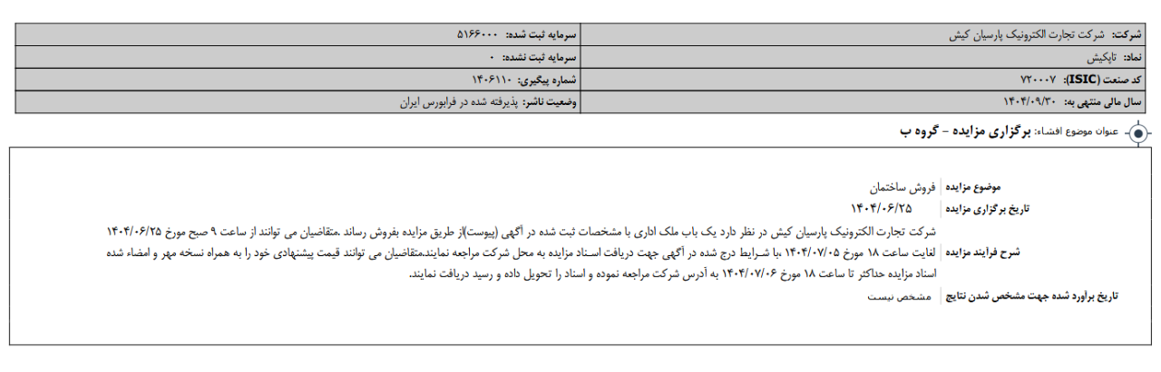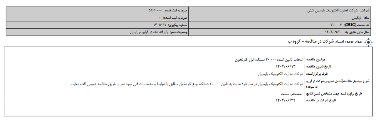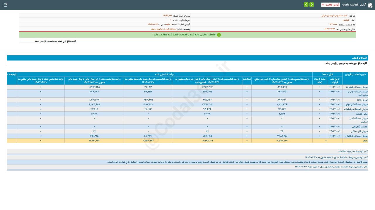 #گزارش_فعالیت_ماهانه #دوره_1_ماهه منتهی به 14040730 شرکت #تجارت_الکترونیک_پارسیان_کیش