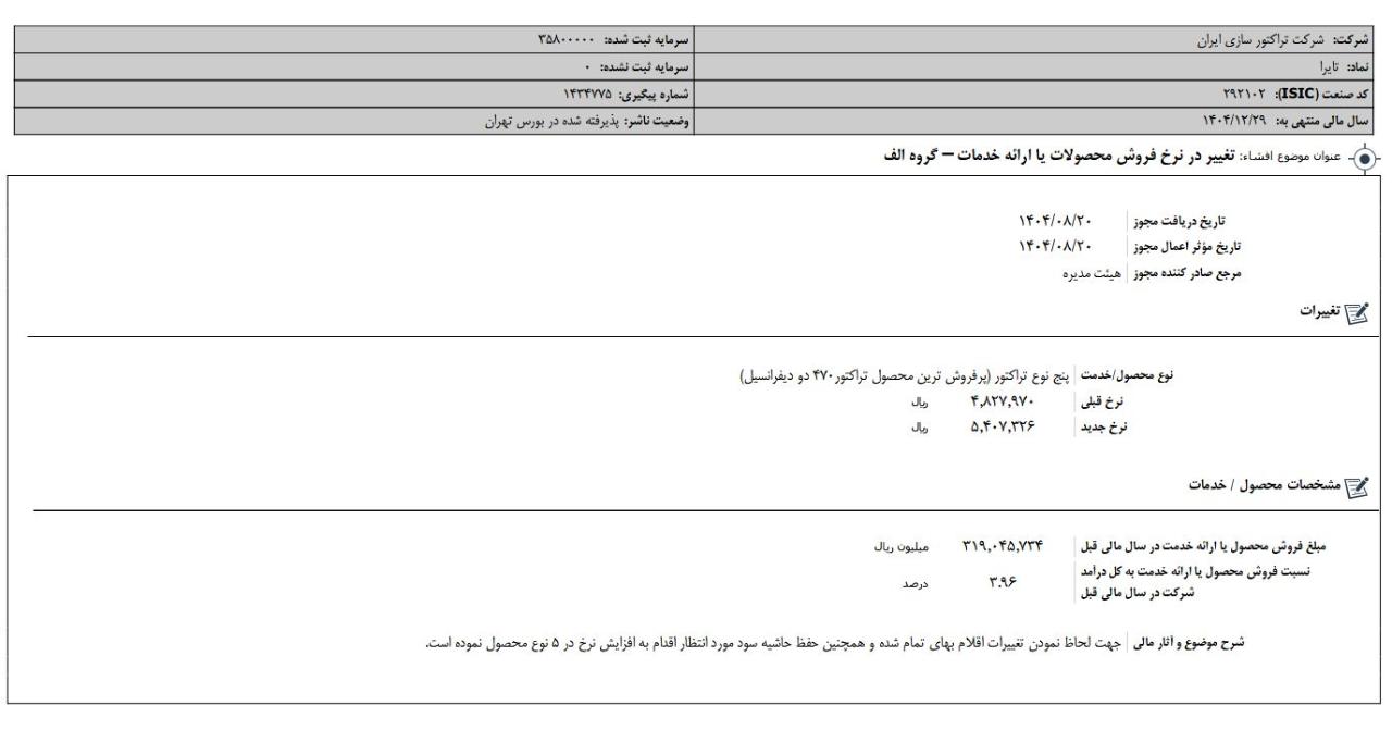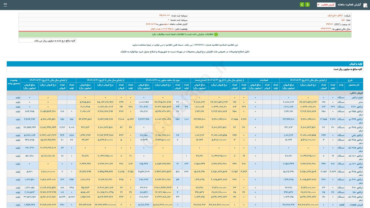 #گزارش_فعالیت_ماهانه #دوره_1_ماهه منتهی به 14040730 شرکت #تراکتور_سازی_ایران