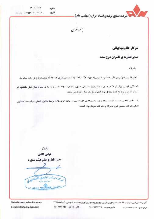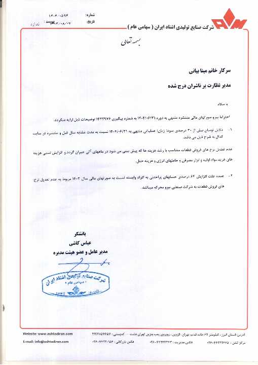 در خصوص صورتهای مالی منتشر شده منتهی به 1403.06.31
