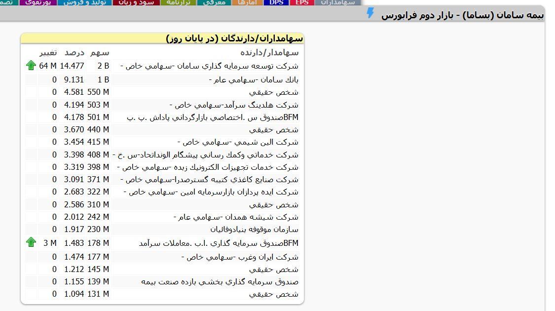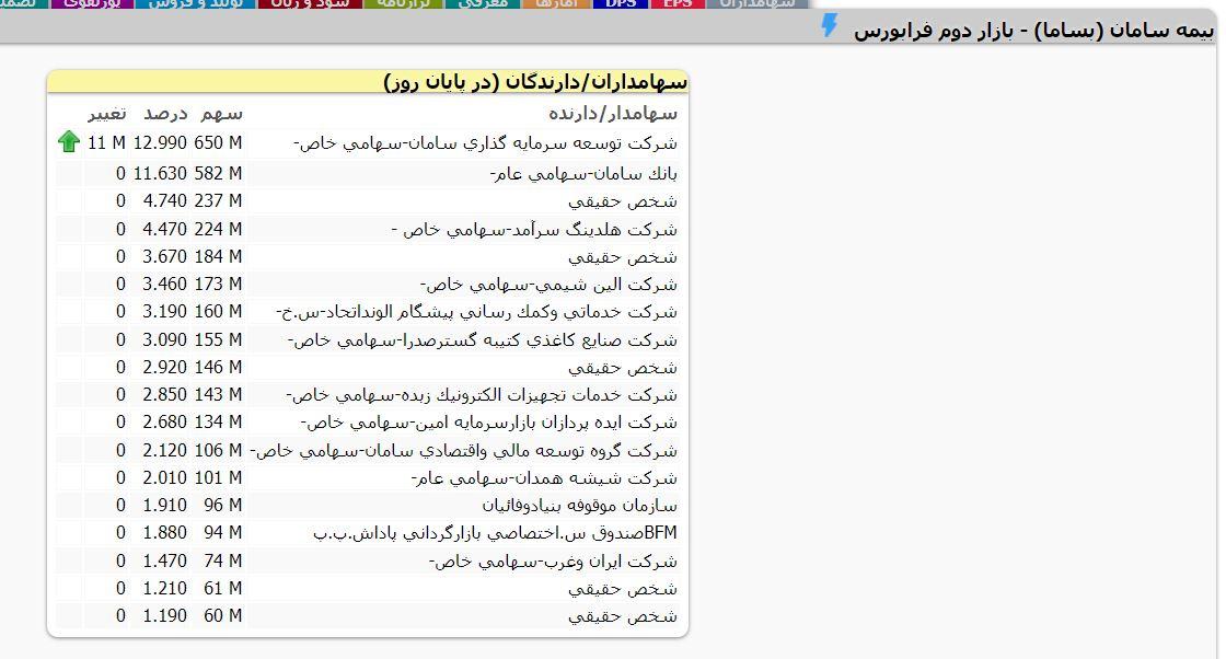 خریدار #بساما در معامله بلوکی دیروز 2 اردیبهشت ماه شركت توسعه سرمايه گذاري سامان بود فروشنده معامله شركت گروه مالي اقتصادي سامان بود که با این فروش از جمع سهامداران بالای یک درصد خارج شد.