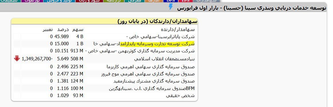 در روز معاملاتی 2 مهر 1404 تعداد یک میلیارد و 349 میلیون سهم #حسینا در نماد #حسینا4 بصورت عمده در قیمت 163 ریال از بنیاد مستضعفان انقلاب اسلامی ایران به شركت توسعه وتجهيزمعادن امداد منتقل شد. این شرکت با 15 درصد سهام به جمع سهامداران بالای یک درصد پیوست. اینکه قیمت سهم در بازار بالای 859 تومان هست ولی در قیمت 163 ریال واگذار شده احتمالا یک انتقال درون گروهی بوده برای پرداخت کمتر کارمزد!