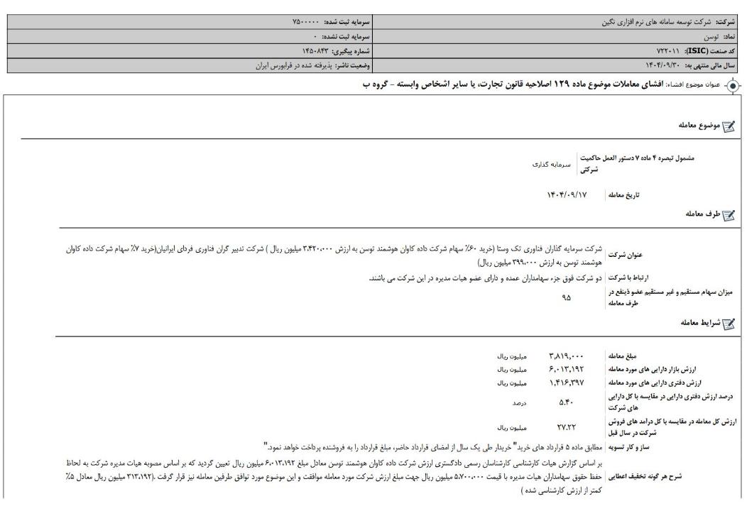 افشای اطلاعات بااهمیت،افشای معاملات موضوع ماده 129 اصلاحیه قانون تجارت، یا سایر اشخاص وابسته-گروه ب