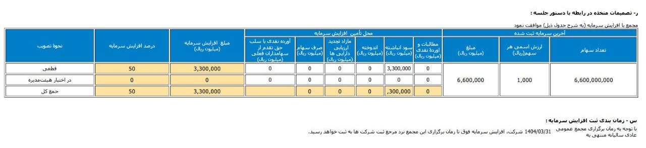 دعوت به مجمع افزایش سرمایه 1190 درصدی از انباشته و تجدید در تاريخ 040305