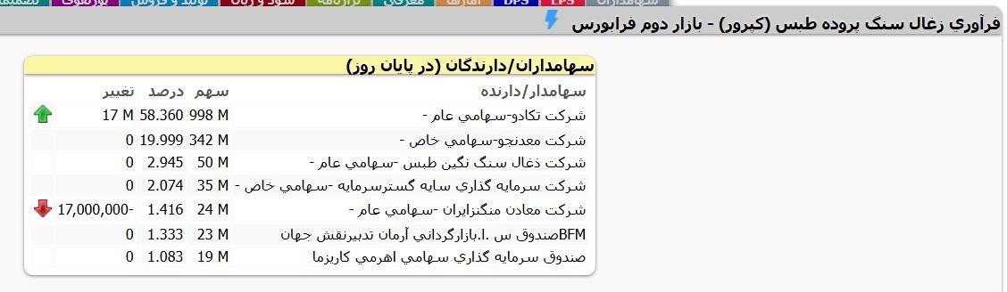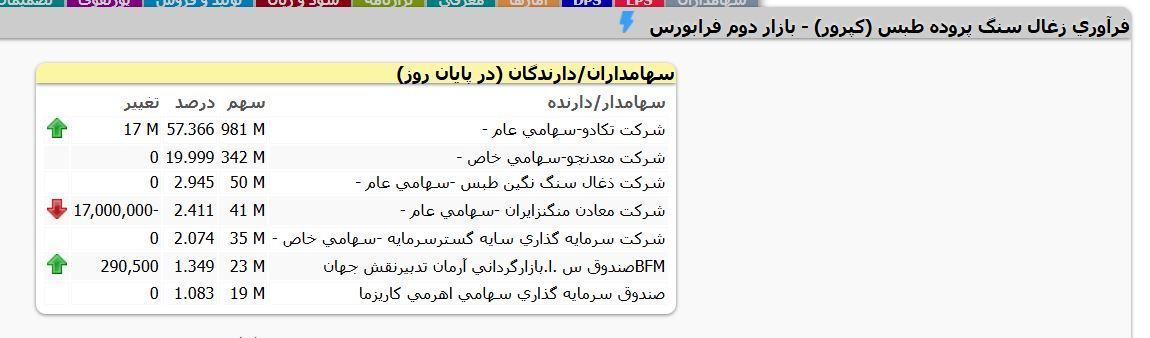 در معامله بلوکی روز 31 اردیبهشت ماه شركت معادن منگنزايران بود که با این فروش از جمع سهامداران بالا یک درصد خارج شد.