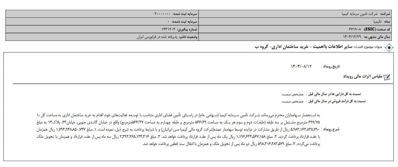 افشای اطلاعات بااهمیت،خرید ساختمان اداری-گروه ب