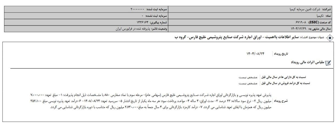 افشای اطلاعات بااهمیت،اوراق اجاره شرکت صنایع پتروشیمی خلیج فارس-گروه ب