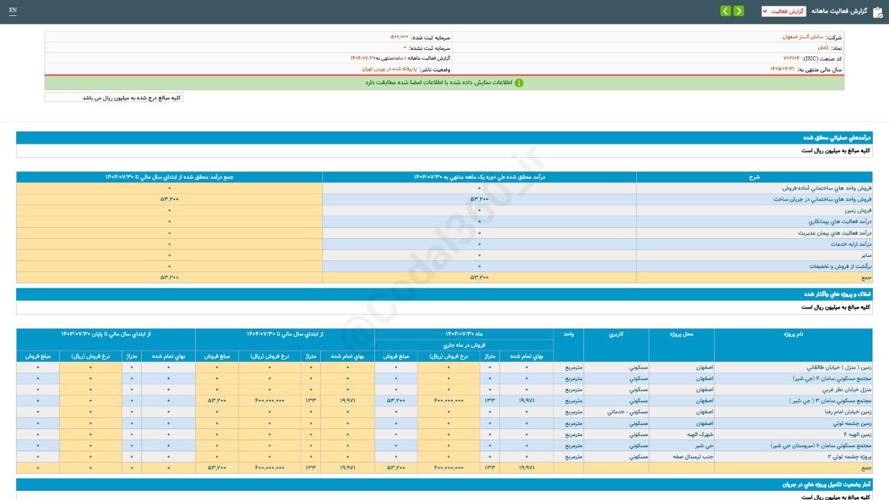 #گزارش_فعالیت_ماهانه #دوره_1_ماهه منتهی به 14040730 شرکت #سامان_گستر_اصفهان
