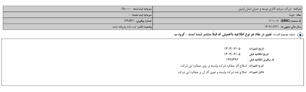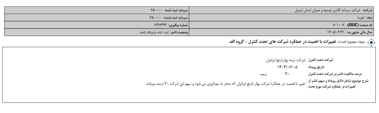 افشای اطلاعات بااهمیت، تغییرات بااهمیت در عملکرد شرکت های تحت کنترل-گروه الف