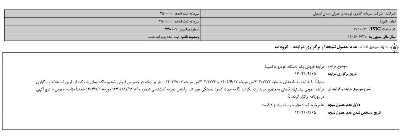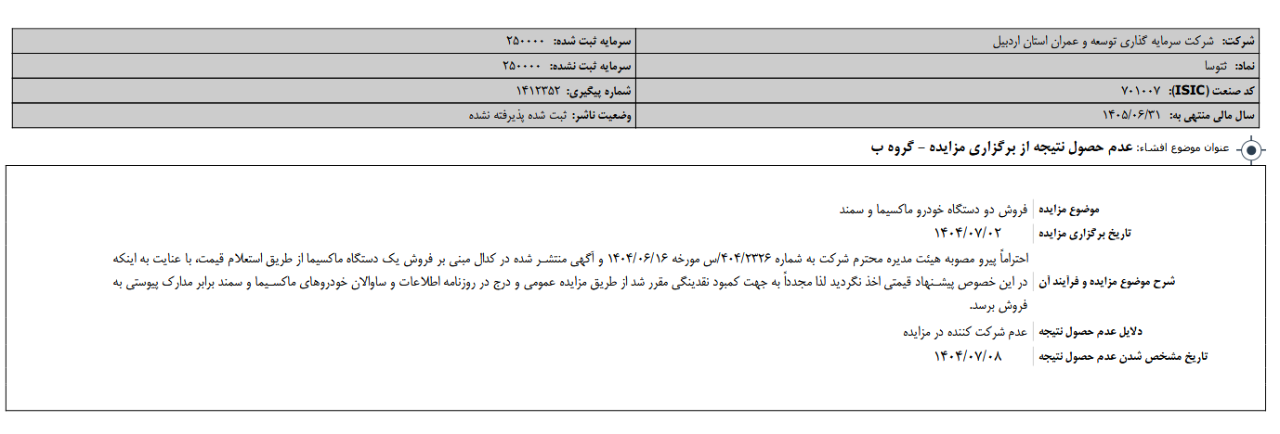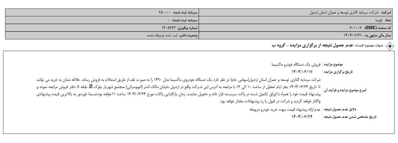 افشای اطلاعات بااهمیت، عدم حصول نتیجه از برگزاری مزایده، گروه ب