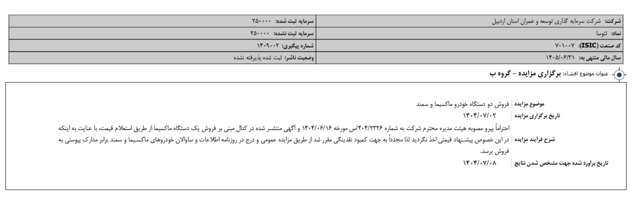 افشای اطلاعات بااهمیت،برگزاری مزایده، گروه ب