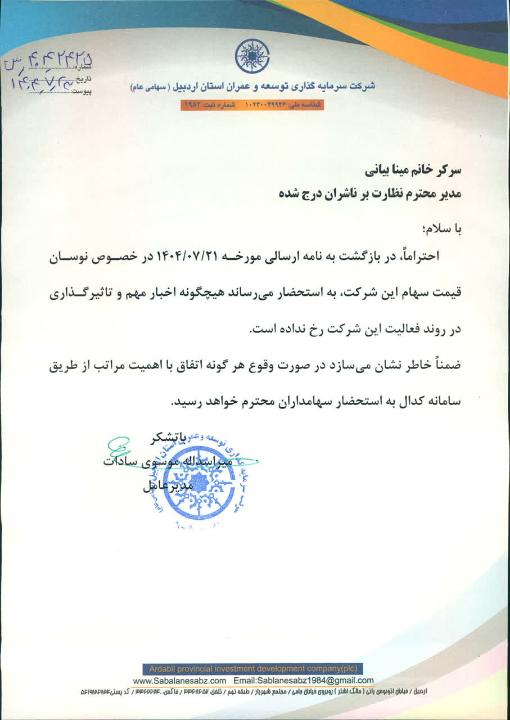 در مزایده فروش ملک عظیمیه کرج بانک اقتصاد نوین به عنوان برنده مزایده به مبلغ 16,500,000 میلیون ریال و شناسایی ۸۰۰ میلیارد تومان سود برای شرکت از محل فروش این ملک سود غیر عملیاتی ۴۳ تومن به ازای هر سهم