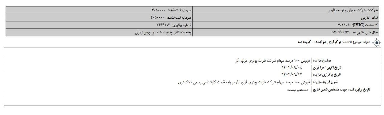 خریدار و فروشنده عمرانوتوسعهفارس در این معامله بلوکی حقوقی بودند.قیمت هر سهم 19580 ریال بود.