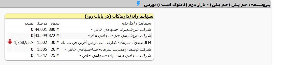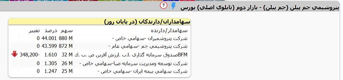 خریدار و فروشنده پلي پروپيلن جم - جم پيلن در این معامله بلوکی حقوقی بودند. سه خریدار و دو فروشنده معامله را انجام دادند.قیمت هر سهم 171966 ریال بود.