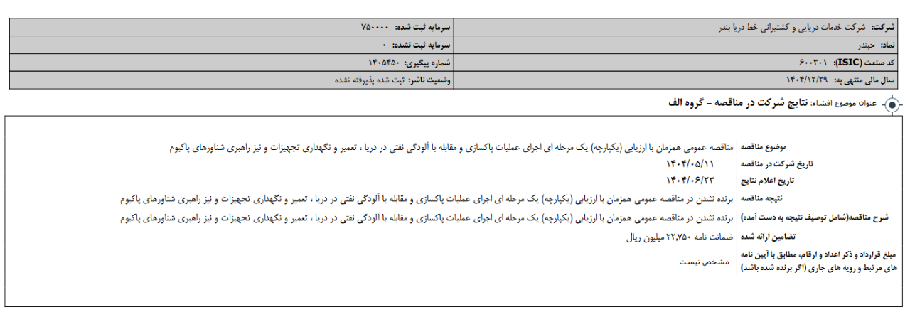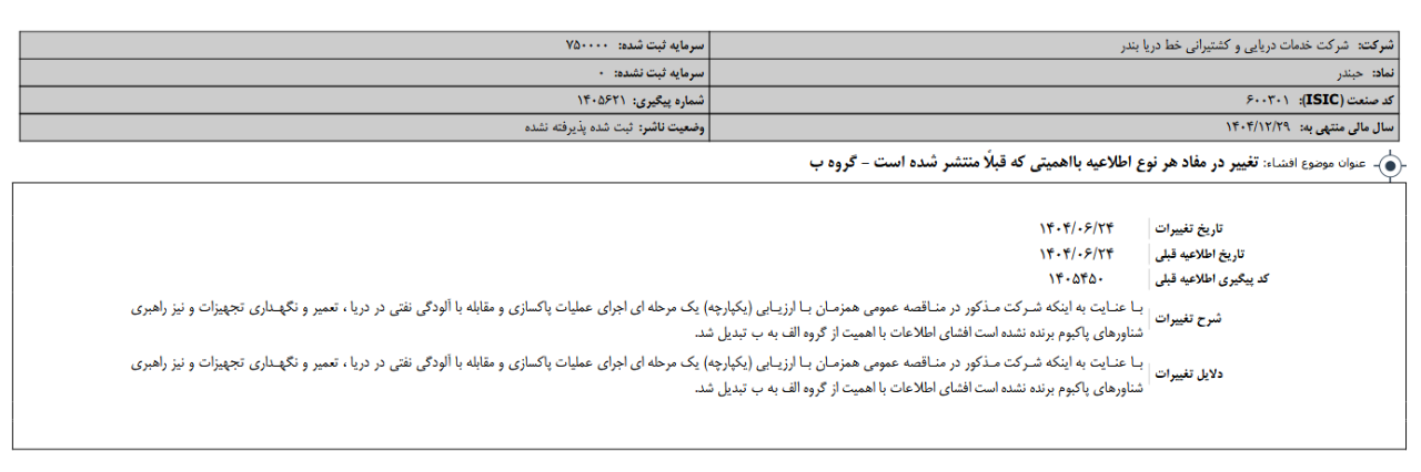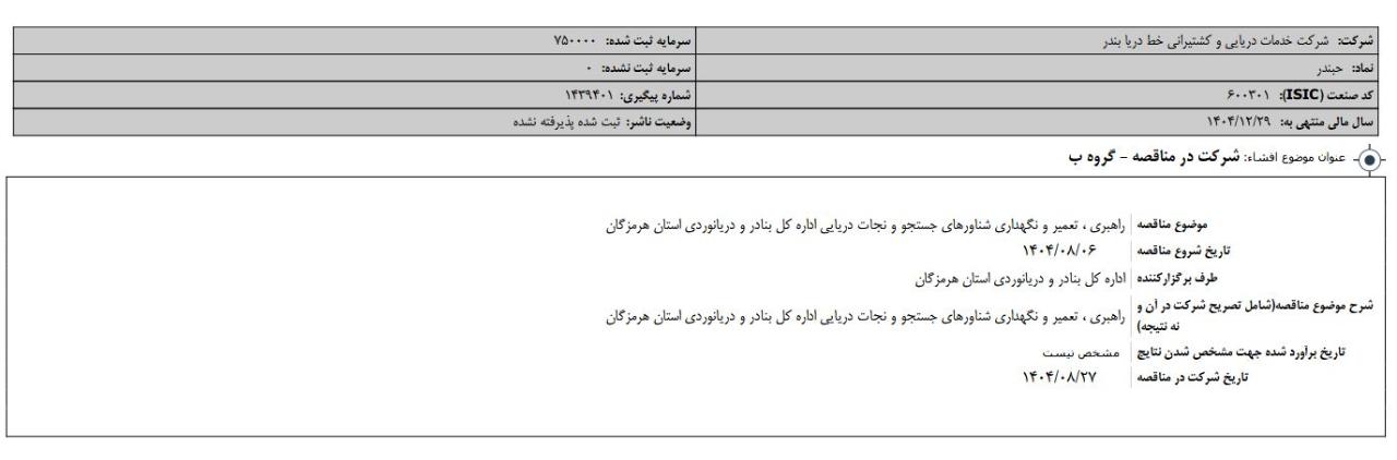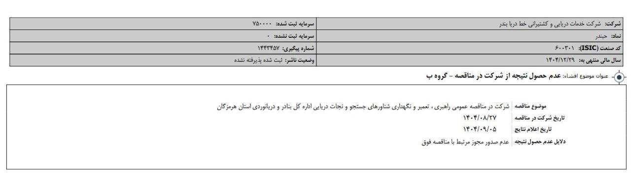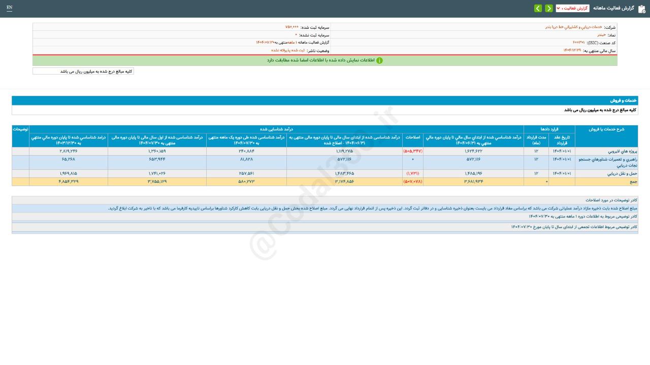 #خدمات_دریایی_و_کشتیرانی_خط_دریا_بندر ▪️ شرکت خدمات دریایی و کشتیرانی خط دریا بندر در دوره 6 ماهه منتهی به 14040631 به ازای هر سهم 1,250 ریال سود شناسایی کرده است، که نسبت به مدت مشابه سال قبل 34 درصد افزایش داشته است.