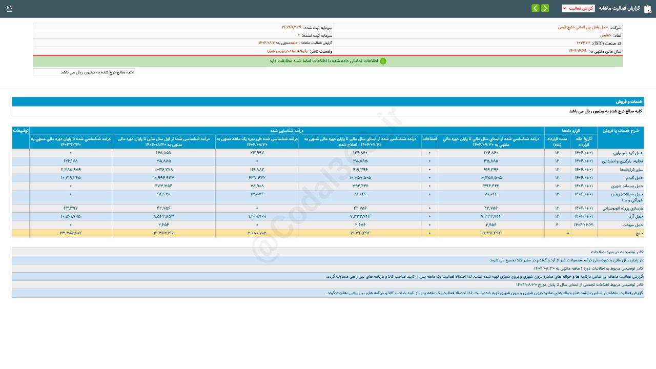 #گزارش_فعالیت_ماهانه #دوره_1_ماهه منتهی به 14040830 شرکت #حمل_ونقل_بین_المللی_خلیج_فارس
