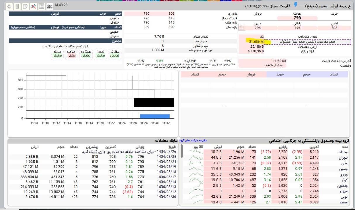 به اطلاع ميرساند؛ با توجه به فروش تمامي حق تقدم استفاده نشده سهام شرکت سهامي بيمه ايران - معين سهامي عام در نماد معاملاتي معينح1، نماد معاملاتي مذكور متوقف گرديد