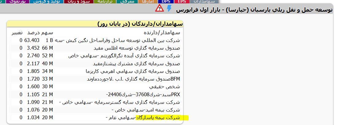 دیروز 15 مهر 1404 شركت بيمه پاسارگاد با خریدی که در نماد #حپارسا داشت به جمع سهامداران بالای یک درصد این شرکت پیوست.