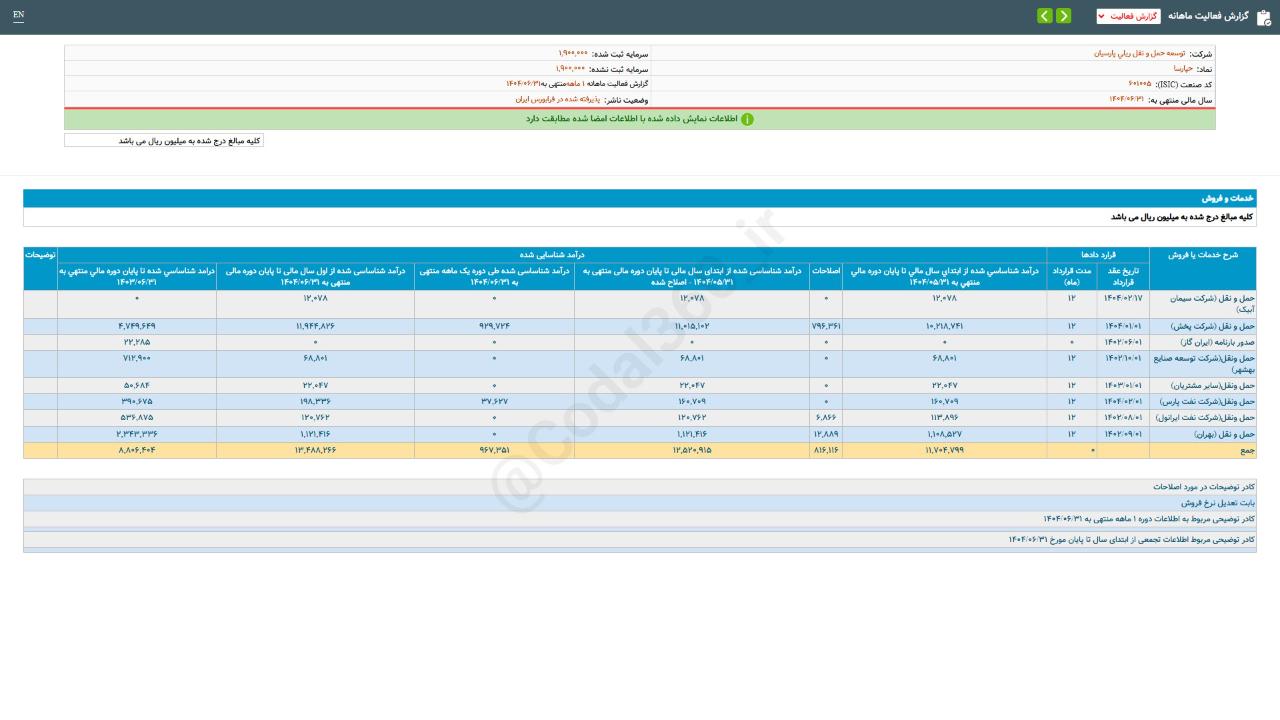 #گزارش_فعالیت_ماهانه #دوره_1_ماهه منتهی به 14040631 شرکت #توسعه_حمل_و_نقل_ریلی_پارسیان